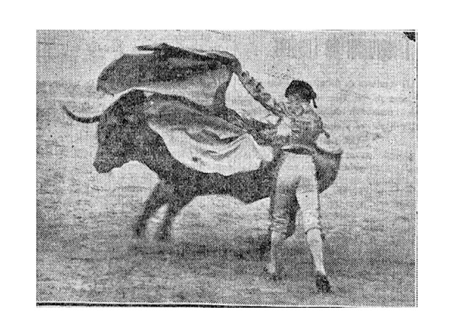 "Al primero le dió un pinchazo y una estocada sin arqueo de brazo. Palmas.Al segundo le toreó bien pero le entró rápido a matar. Palmitas."