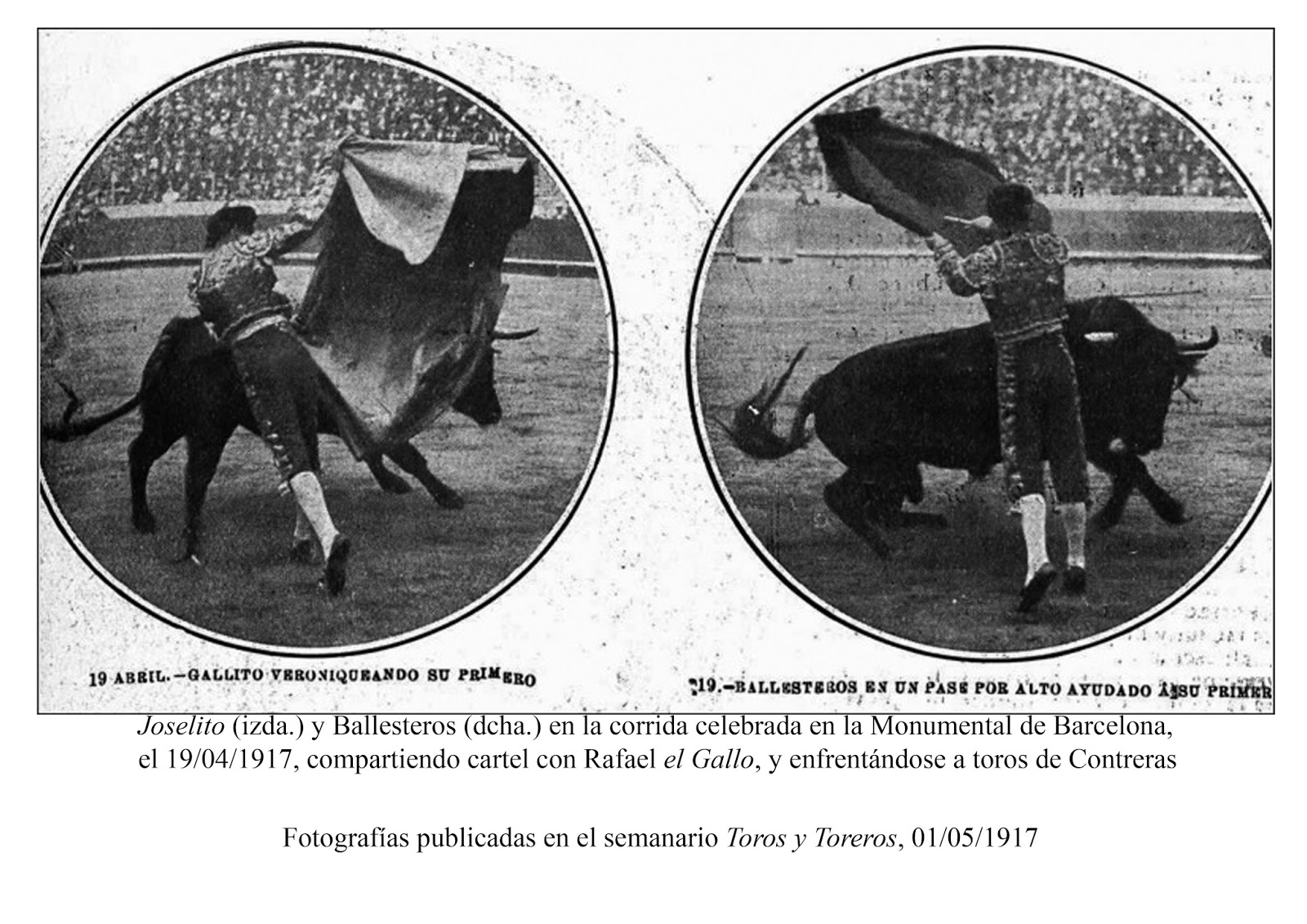 Fotografías y textos publicados en Toros y Toreros del 3 de Abril de 1917.